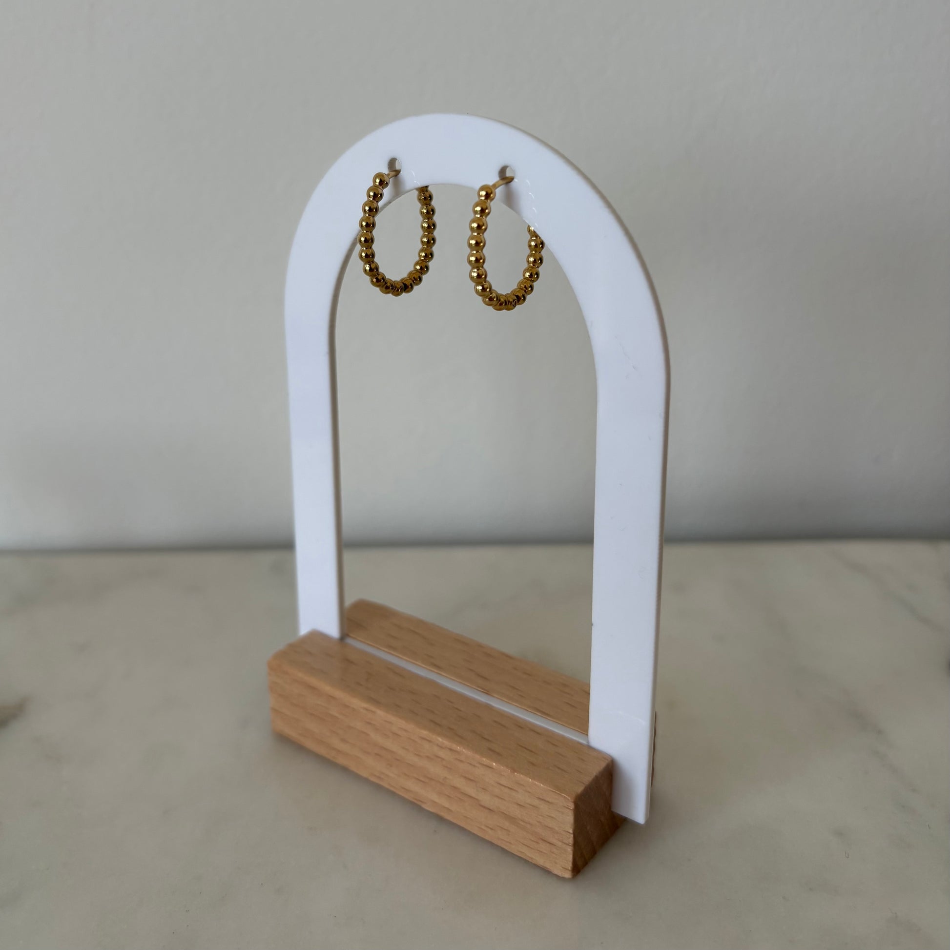 Minimalistes et raffinées, ces boucles d’oreilles créoles apportent une touche lumineuse et intemporelle à toutes vos tenues. Leur design délicat, composé de petites perles dorées finement alignées, capte la lumière avec subtilité et élégance.