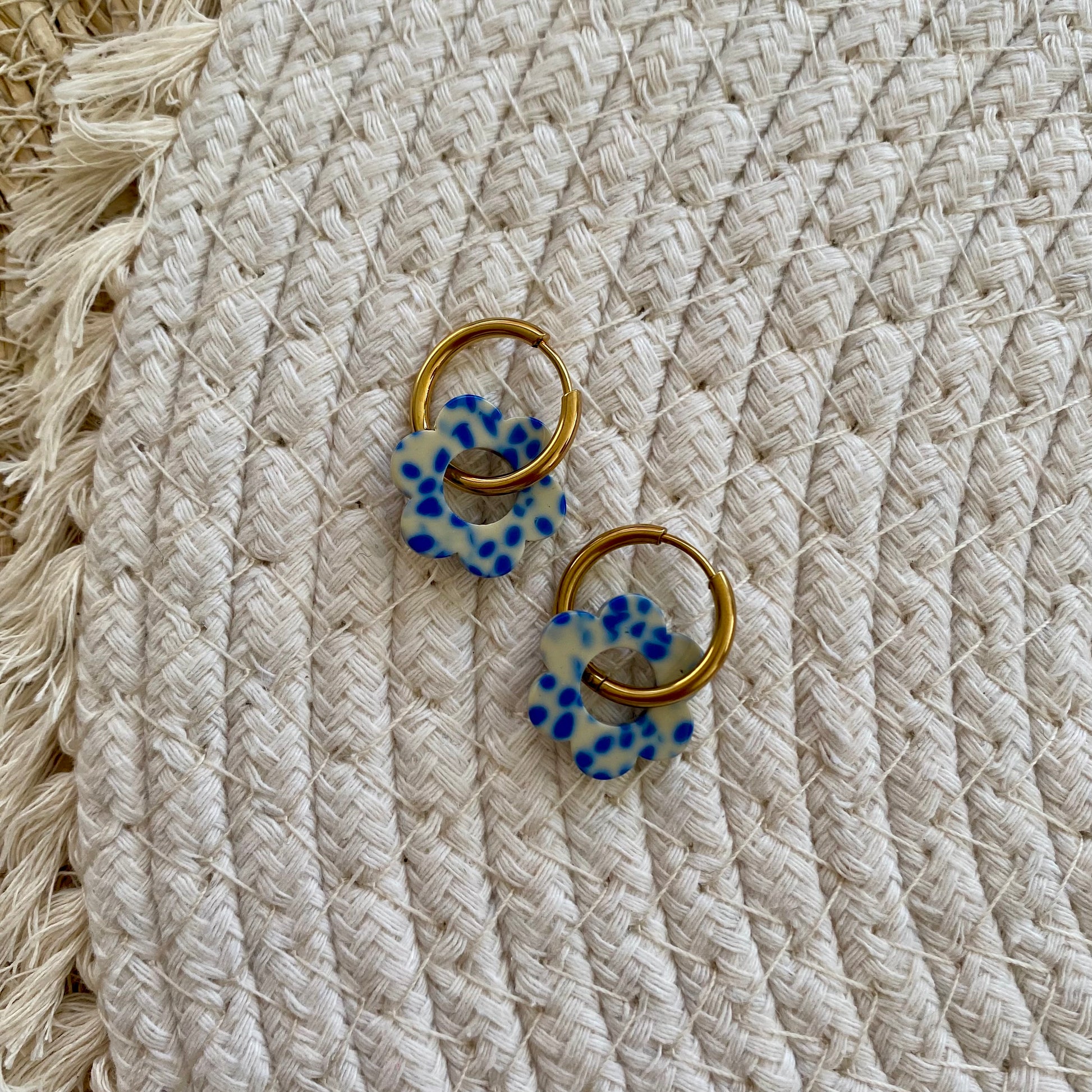 Boucles d’oreilles Pivoine - Tacheté bleu