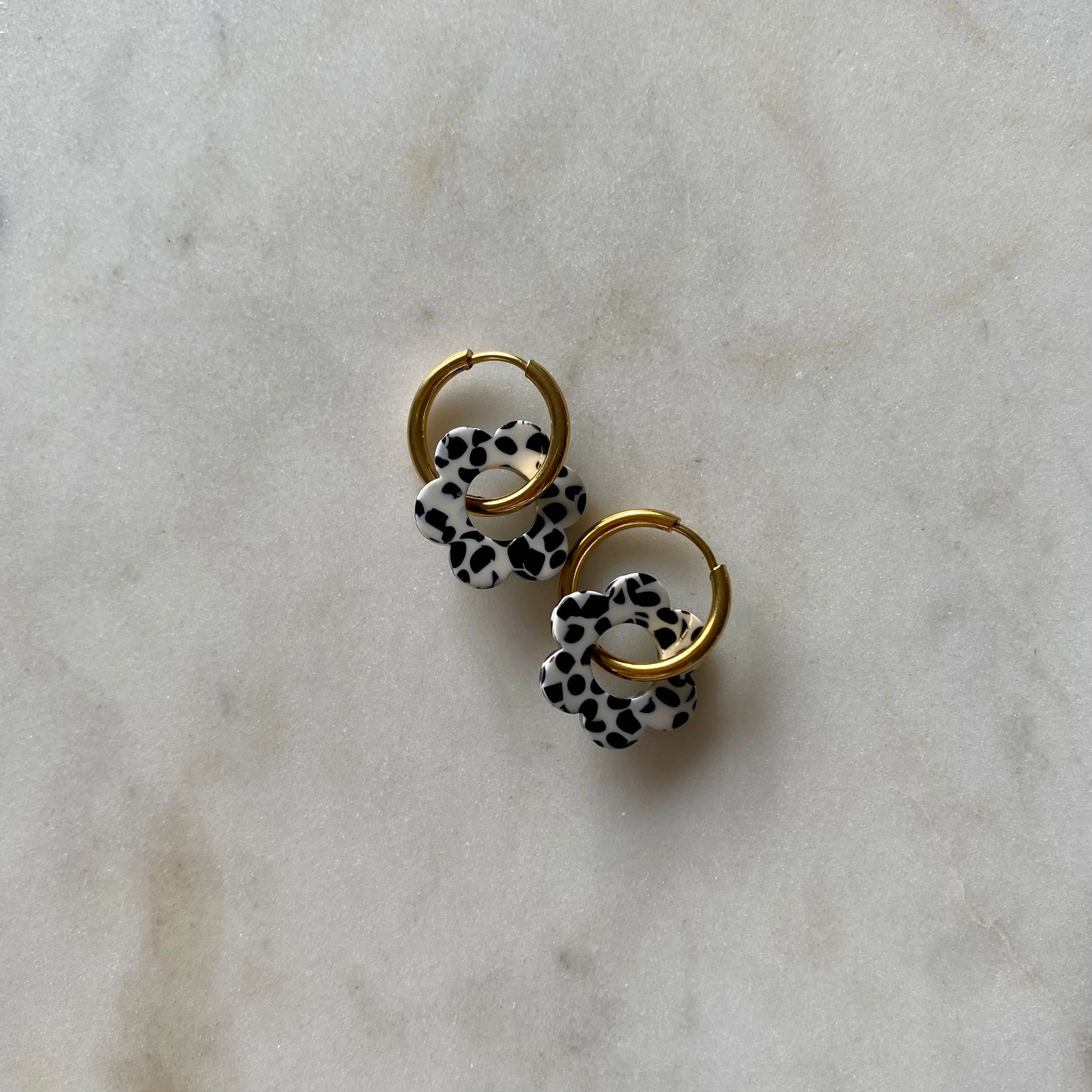 Boucles d’oreilles Pivoine - Tacheté noir et blanc