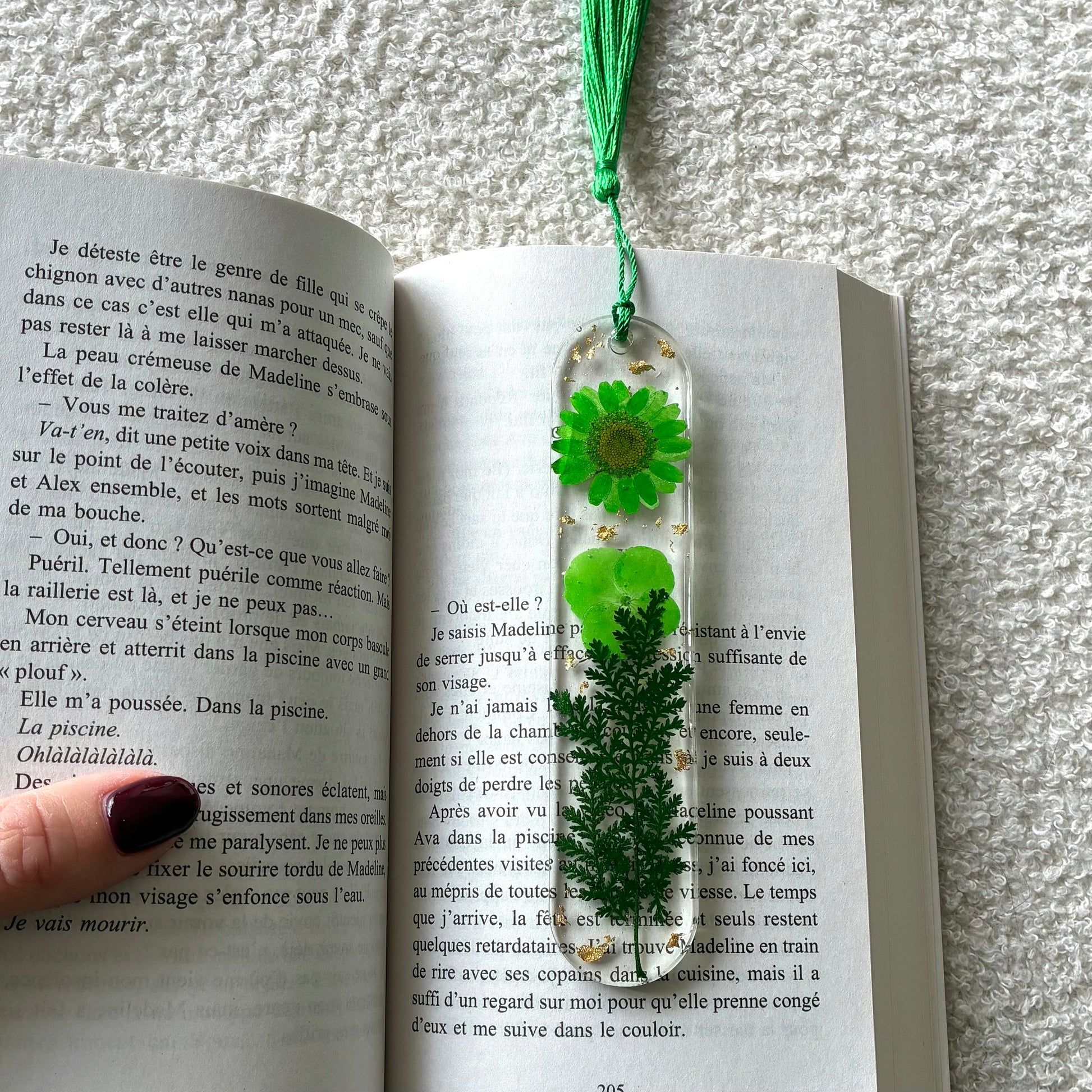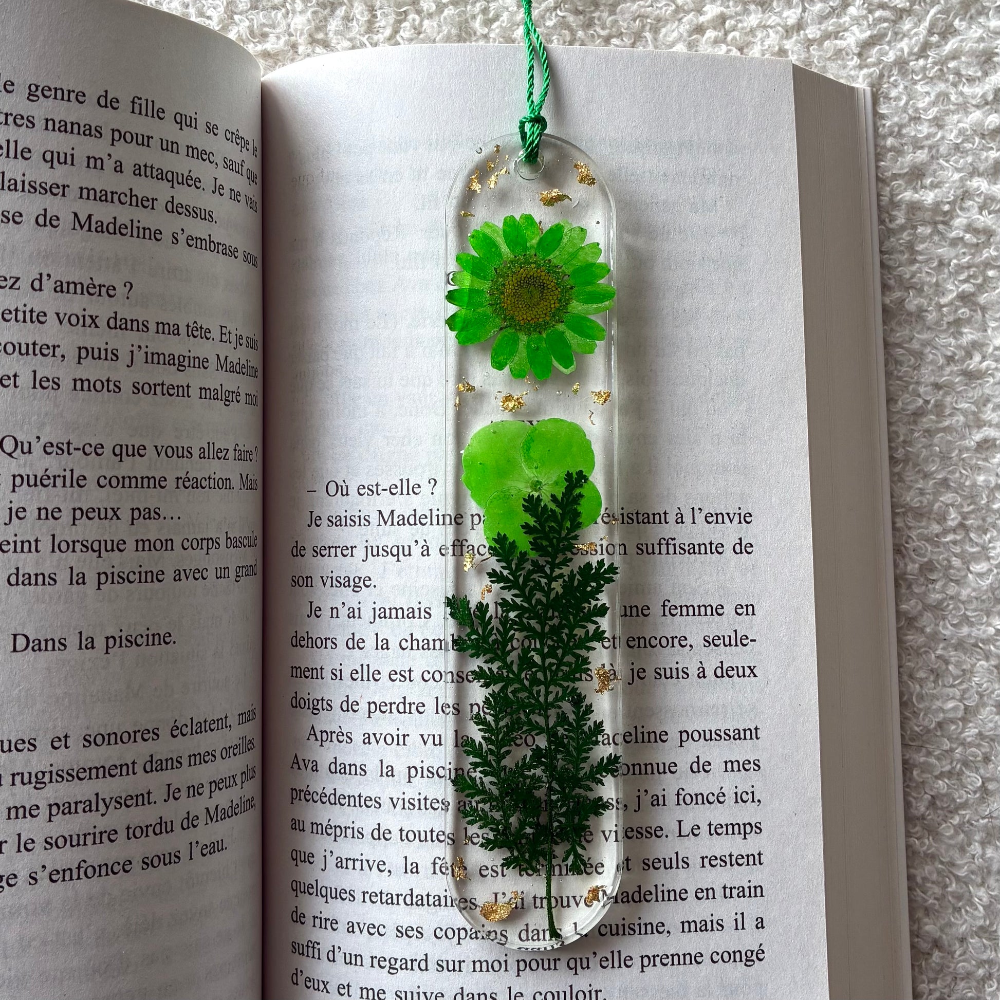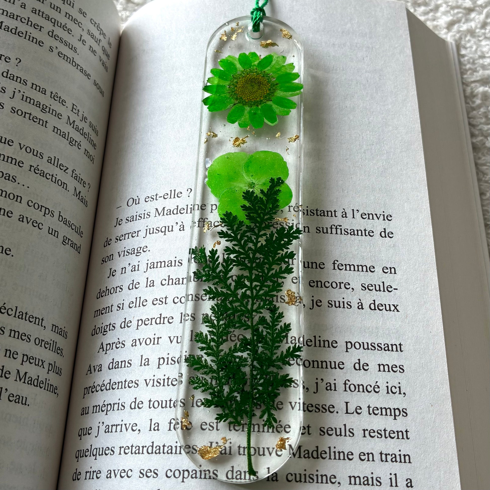 Marque page (arrondi - épais) - Fleurs vertes