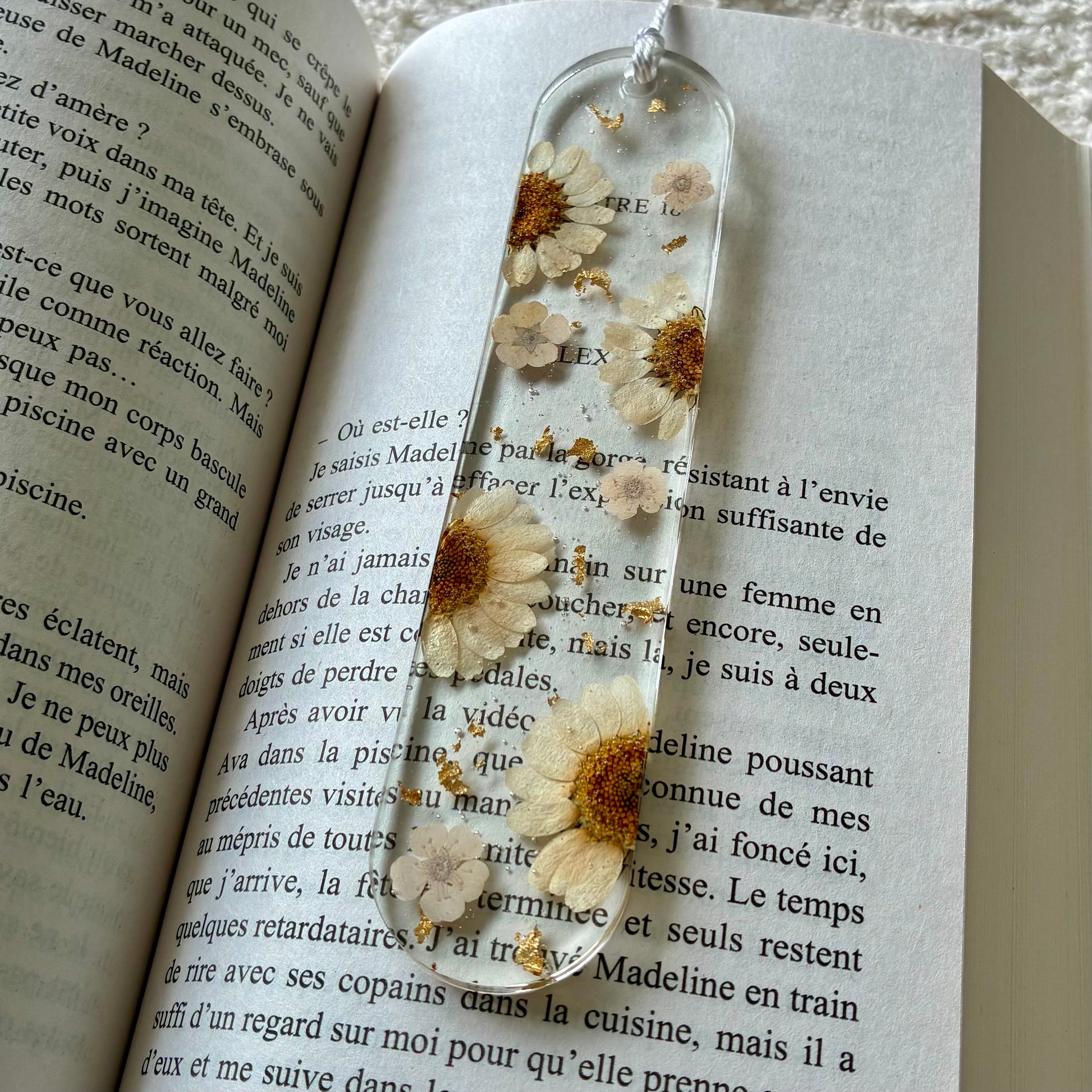 Marque page (arrondi - épais) - Marguerites et petites fleurs blanches