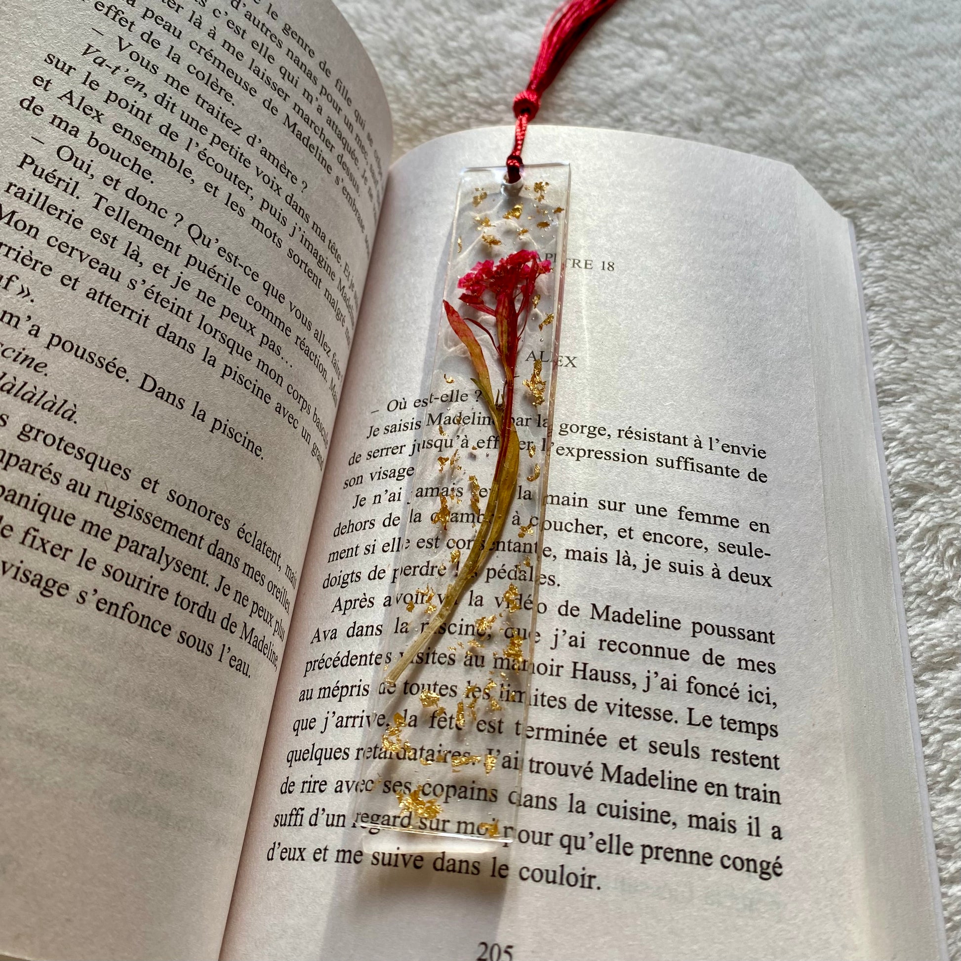 Ajoutez une touche de poésie à vos lectures avec ces magnifiques marque-pages en résine faits main, ornés de véritables fleurs séchées. Chaque pièce est unique et fabriquée avec soin, capturant la beauté de la nature dans un design raffiné et durable.