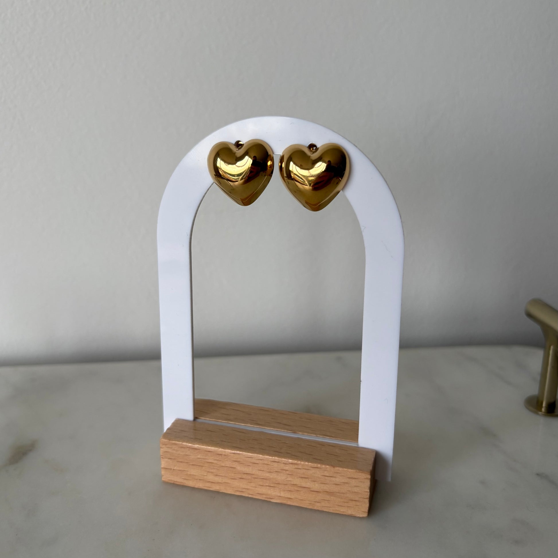 Délicates et lumineuses, ces boucles d’oreilles en forme de cœur séduisent par leur finition dorée effet miroir, qui reflète la lumière avec élégance. Leur design lisse et arrondi apporte une touche romantique subtile, sans jamais être trop sage.